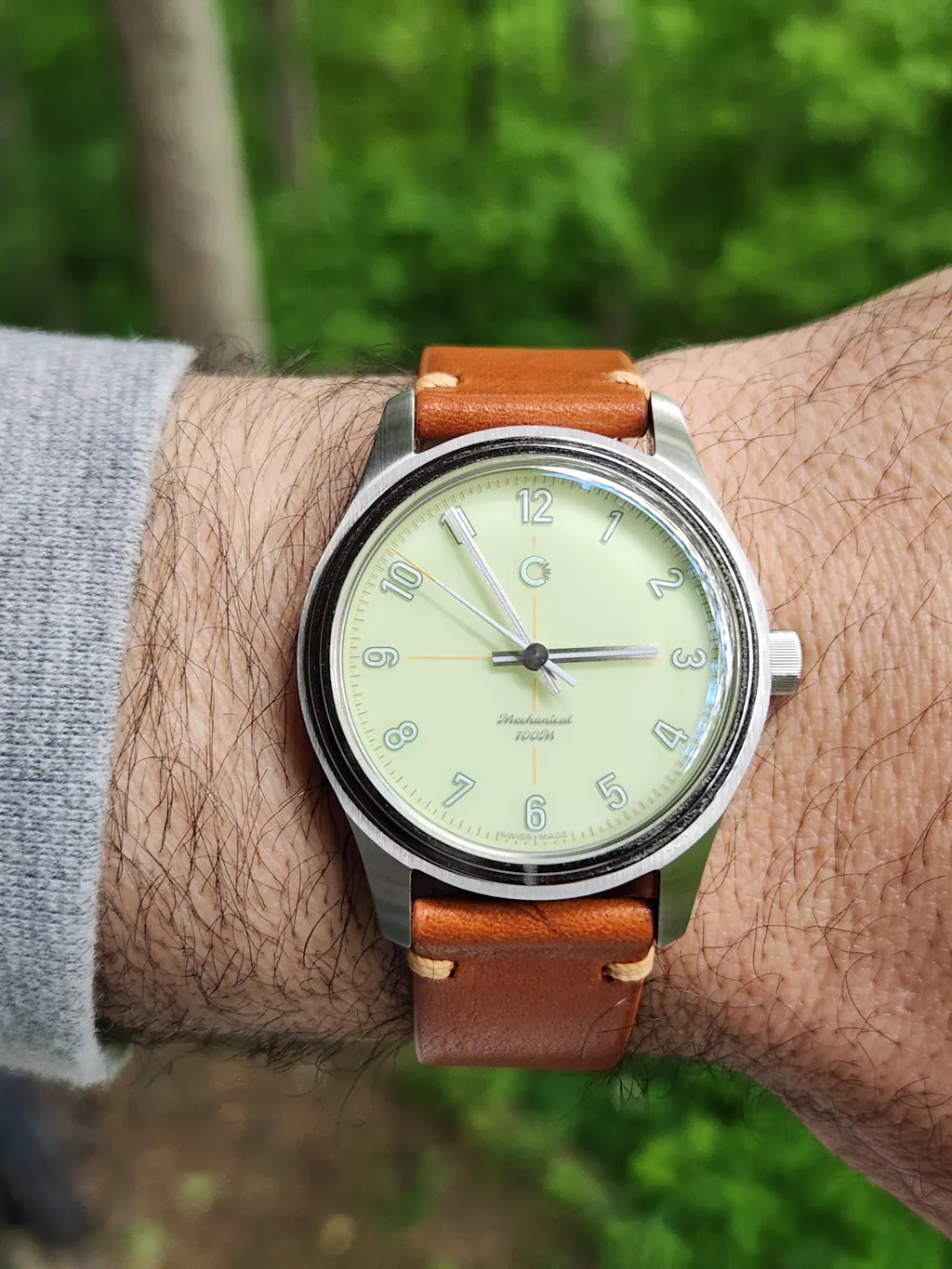 I've never been a wearer of green watch dials. This green is different. Its truly a shade of green I've never seen on a watch or really anything before. The design of the watch is timeless classic. Looking forward to seeing what Camp Watches does next.
